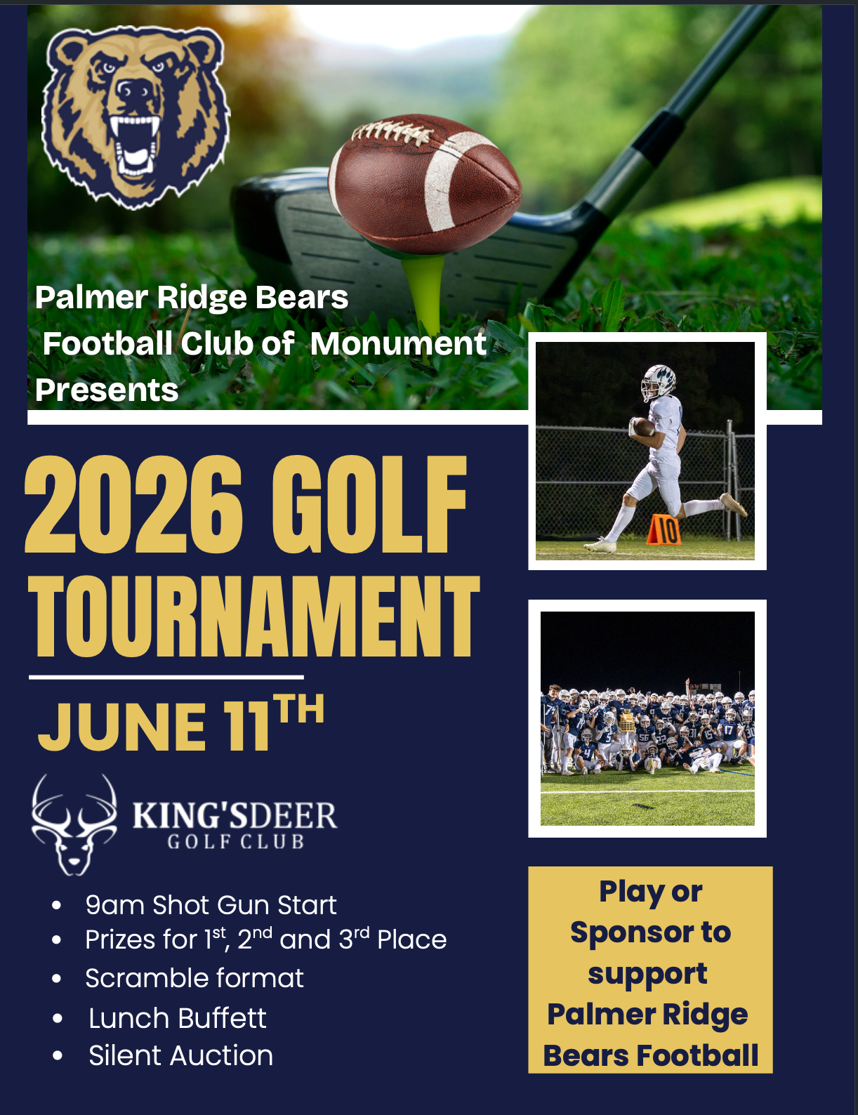 Join us for the inaugural year of ROCK THE STADIUM! The stadium will be hopping, first with PR Football, followed by a concert on the field by Monument's own, Wirewood Station. You'll enjoy food, a silent auction, a 50/50 raffle, games, and fun for all ages. Presented by the Bears Football Club of Monument, we aim to build community with our Monument, Palmer Lake, Colorado Springs friends and fans and raise money for Palmer Ridge Football. In our opinion, nothing is better than kicking off football season, and we can't wait to ROCK THE STADIUM with you!!